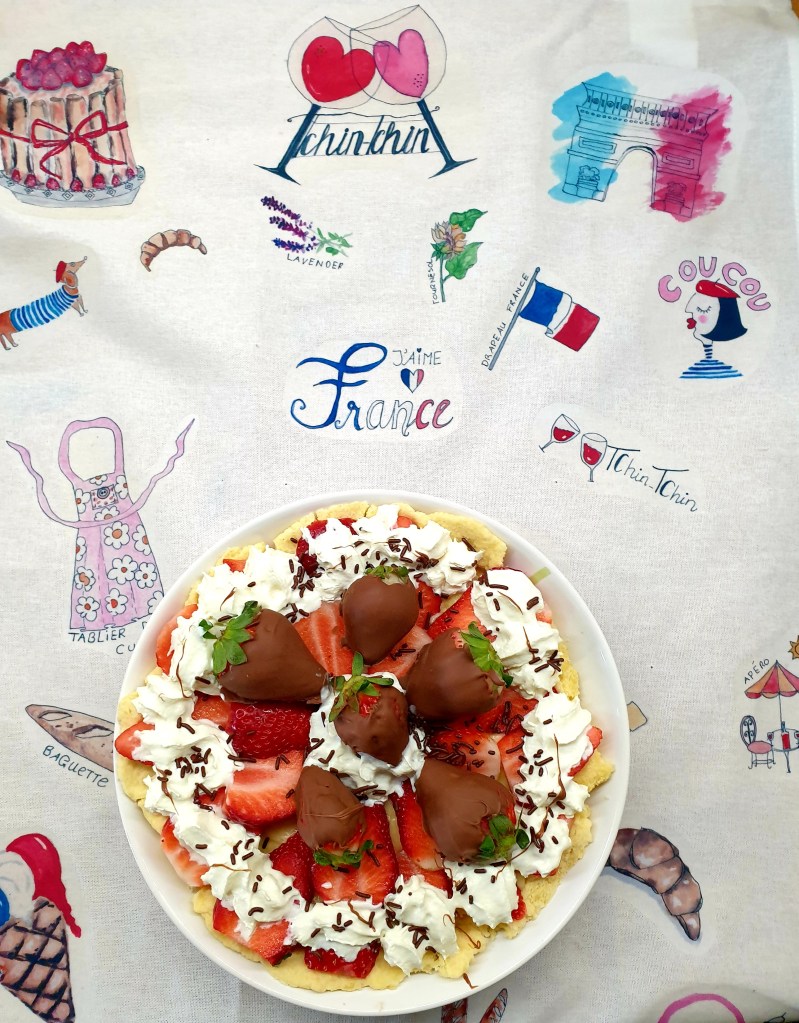 - 400 g de fraises fraîches, coupées en deux ou en tranches