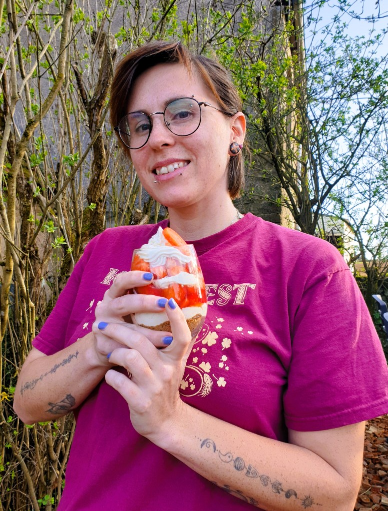 Voor een vleugje lente en Pasen in elke hap, presenteert dit recept “aardbeien in een glaasje”: een harmonieuze blend van sappige aardbeien, rijke mascarpone, en een knapperige koekjesbodem.