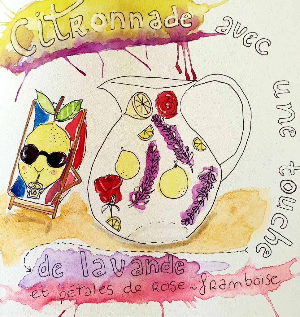 Het is volop zomer in Bourgondië en eigenlijk in heel Frankrijk; de perfecte tijd om citronnade te bereiden. Het basisrecept vind je in mijn eigen Franse familiereceptenboek, maar de variant die ik vandaag maak met lavendel en enkele rozenblaadjes is net even anders. Het is niet moeilijk te maken, het vereist alleen wat tijd. Ondanks dat het lijkt alsof er veel suiker wordt gebruikt, bereiden we eigenlijk een siroop waarvan we slechts een kleine hoeveelheid aan het glas toevoegen, rijkelijk aangevuld met water of mineraalwater.”