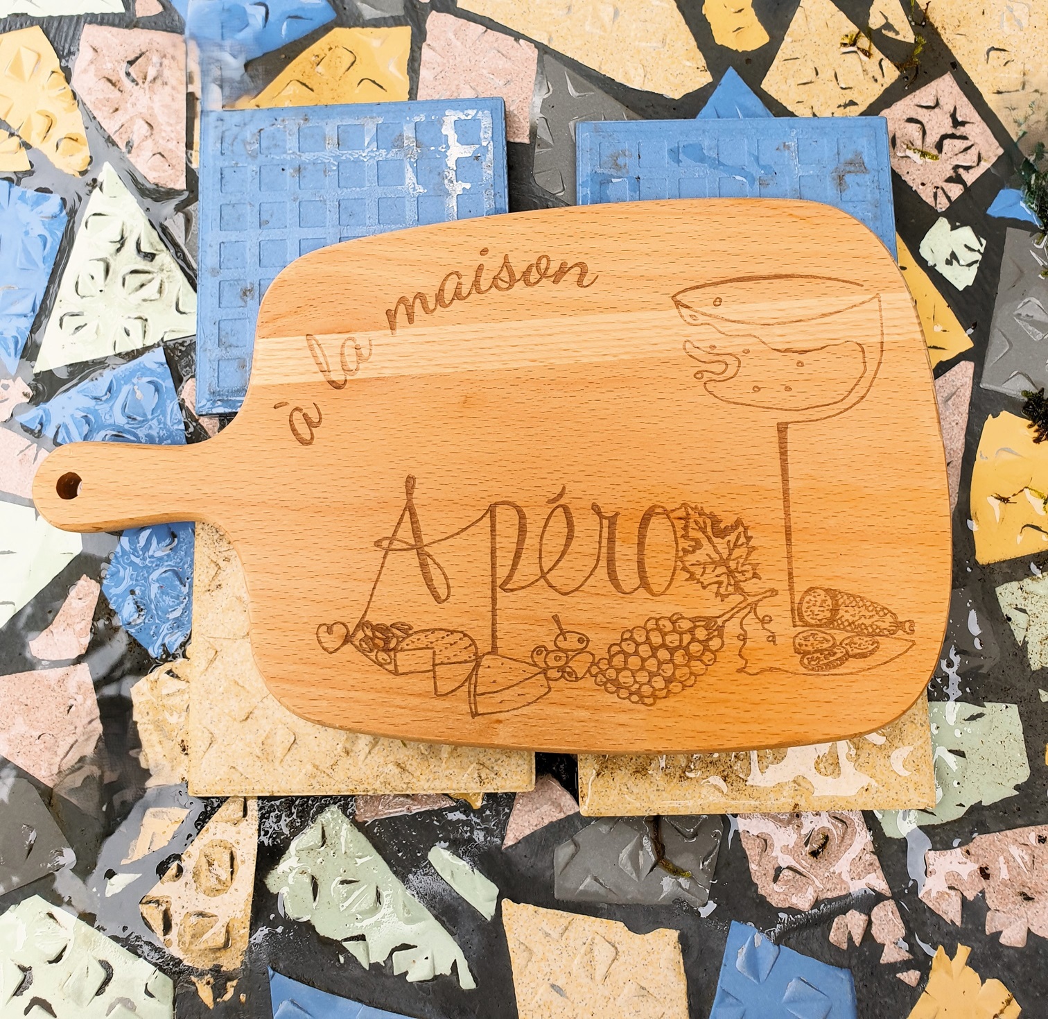 En décembre, pensez aux fêtes de Noël et du Nouvel An, où les apéros seront nombreux ! Quoi de mieux que de les servir sur une planche en bois de hêtre personnalisée ? Nous avons choisi la Bourgogne, mais nous pouvons graver n’importe quelle région ou département. Ce mois-ci, la gravure est offerte, car décembre est déjà une période coûteuse. Alors, pourquoi ne pas ajouter un apéro et profiter d’un bon moment ?