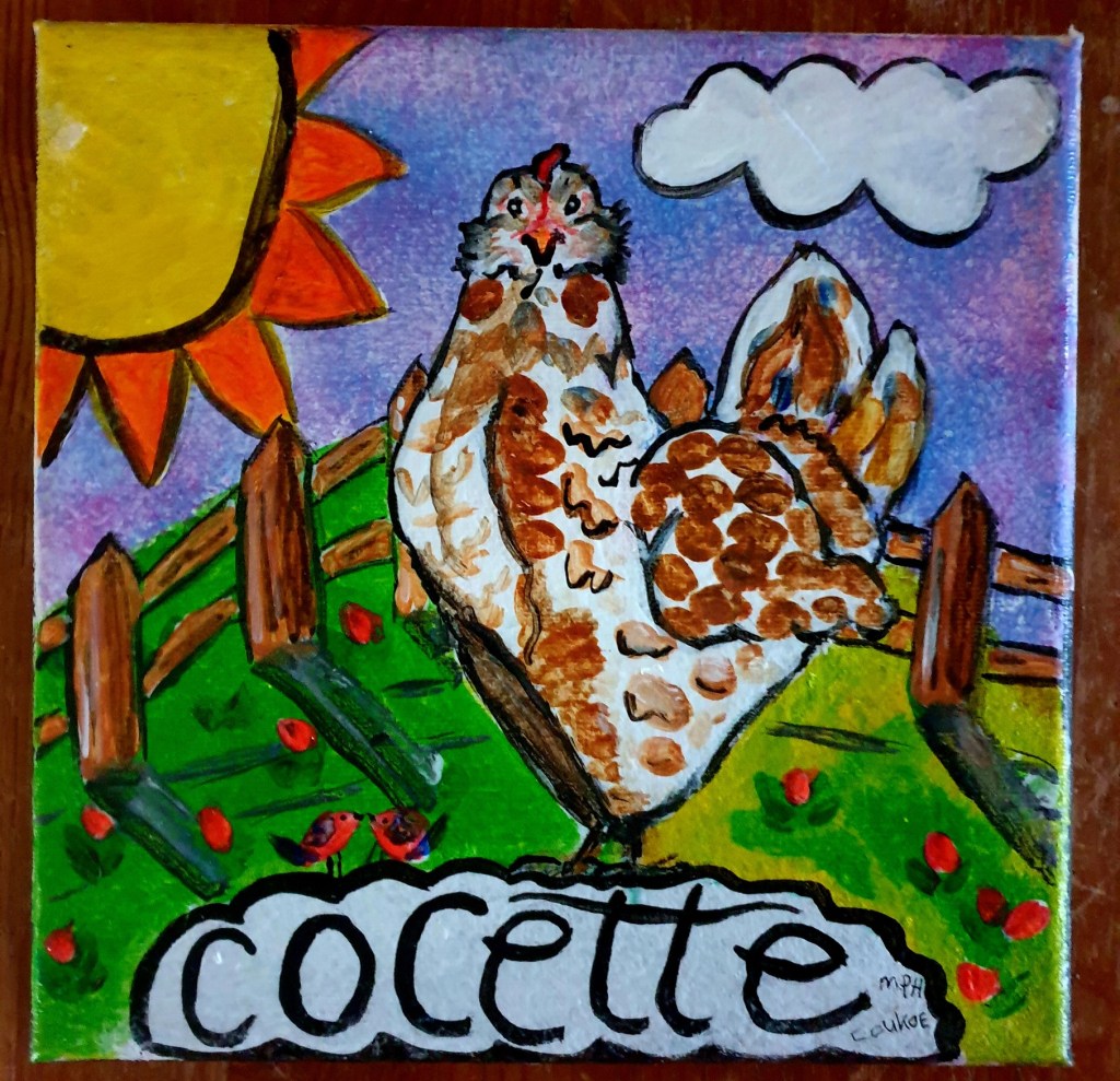 My chickens not only have unique appearances and personalities, but they also have names like Cocette, Clivia, Cees, Cester, Cochin, Charlie, Cintia, Coco, Charlotte, and Carlin. Currently, I am even painting personalized name plaques for each of them on small canvas boards. Keeping chickens is a source of inspiration, creativity, and of course… eggs!