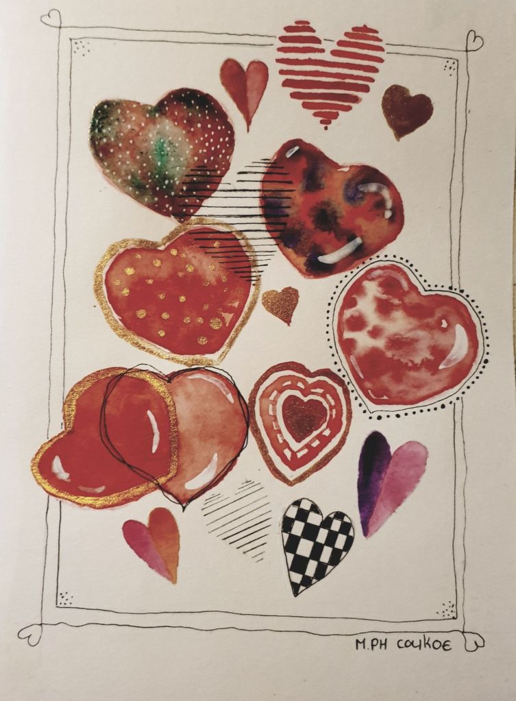 Hoewel Valentijnsdag zelf niet mijn favoriete feestdag is – waarom zou je maar één dag per jaar extra lief zijn? – geniet ik enorm van het maken van Valentijnskaarten. Het creatieve proces prikkelt mijn fantasie en geeft me plezier, zeker als ik weet dat mijn kaarten een glimlach op iemands gezicht toveren. Het leuke is dat je helemaal geen dure materialen nodig hebt: een schetsboek of goedkoop aquarelpapier werkt prima, en zelfs met eenvoudige waterverf kun je prachtige resultaten behalen. Natuurlijk geeft verf van hogere kwaliteit meer pigment, maar bij deze kaarten draait alles om creativiteit. Mijn eerste drie kaarten zijn al af! Ga lekker zelf aan de slag en ontdek hoe ontspannen én leuk het kan zijn!