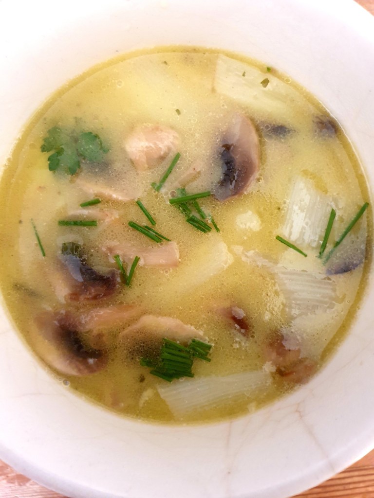 - Laat 30-40 minuten zachtjes trekken, de schillen haal ik er na 15 minuten uit, anders kan de soep iets bitter worden.