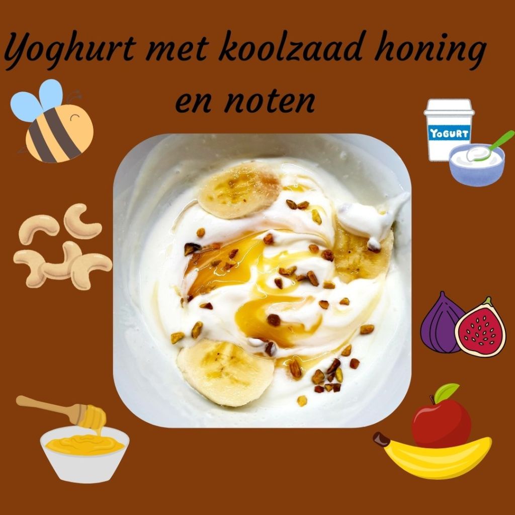 Recept met koolzaadhoning:🍯 Yoghurt met geroosterde noten en koolzaadhoning