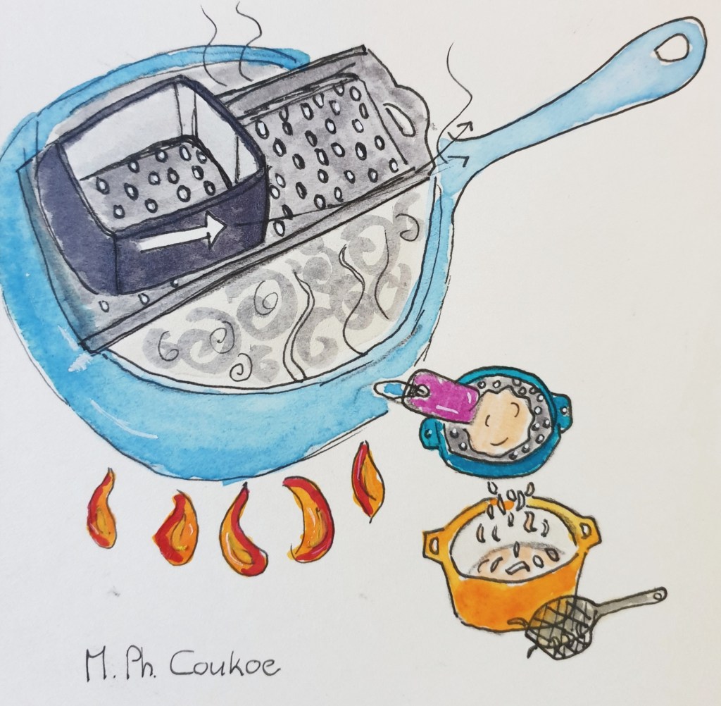 Bij mij begint het met een grote pan gezouten water op het vuur en daarnaast een kom met koud water om de spätzle na het koken kort in af te koelen. Laat de spätzle goed uitlekken. Ik doe het daarna in een afsluitbare vershoud bak en bak het later op in een pan met dikke bodem, met een klontje boter en/of wat olijfolie. Vroeger gebruikte men een houten plank met een mes om de slierten in het water te schaven, maar ik ben inmiddels overgestapt op een spatzenhobel, een speciaal soort schaaf. Het resultaat is iets tussen spätzle en knöpfli in – Zwitsers van vorm, Elzassisch van gevoel en oorsprong. Voor mij helemaal perfect! Mijn familie in de Elzas gebruikt ook de “spatzenhobel” Het is een soort schaaf waarmee je dus makkelijk sliertjes spätzle kunt maken.
