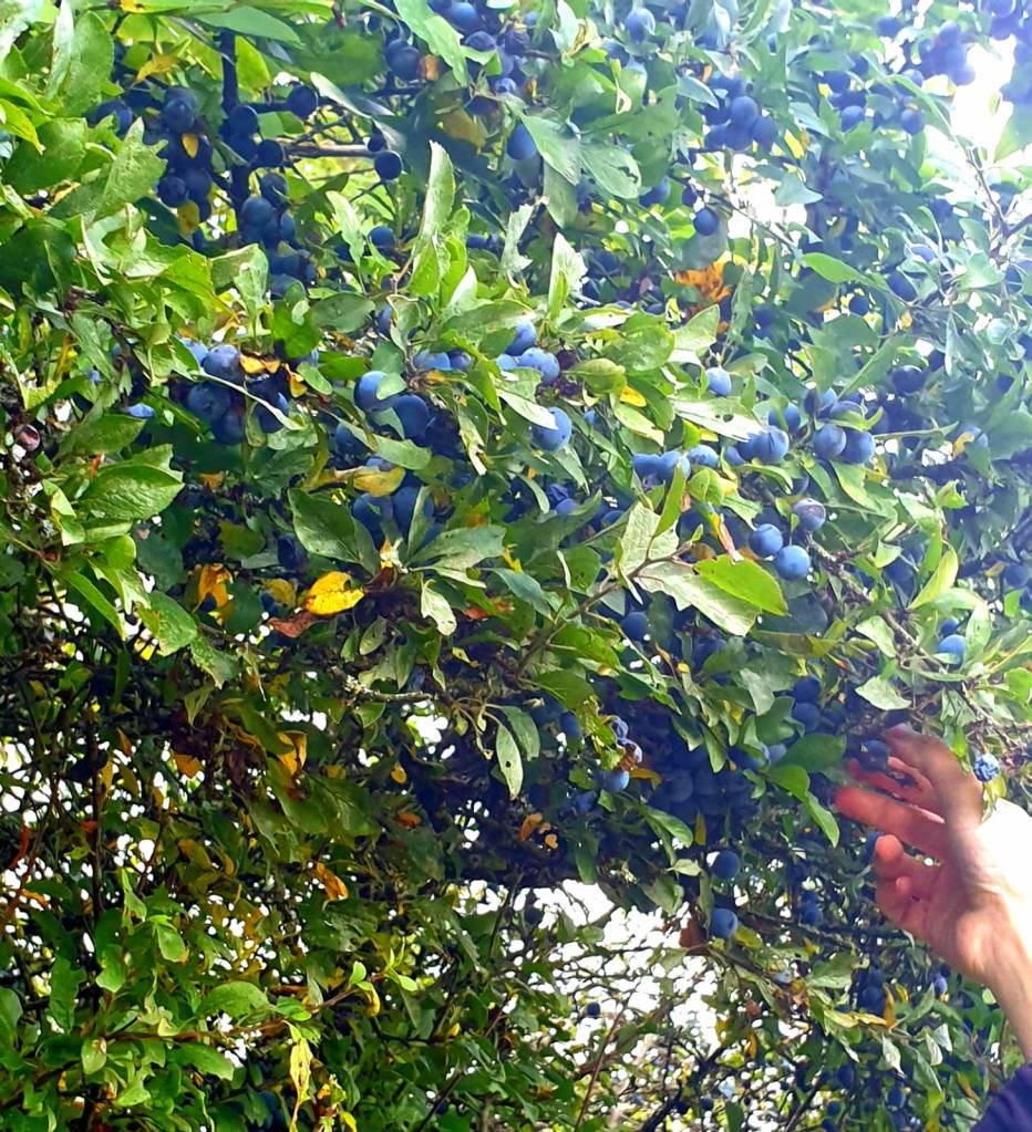 Eén voordeel heeft het wel, dat ik tegenwoordig in standje schildpad over mijn terrein tuf op de zitmaaier: ik zie veel meer dan vroeger. Zo ontdekte ik onlangs, half verscholen aan de rand van het perceel, een prachtige sleedoornpruim.