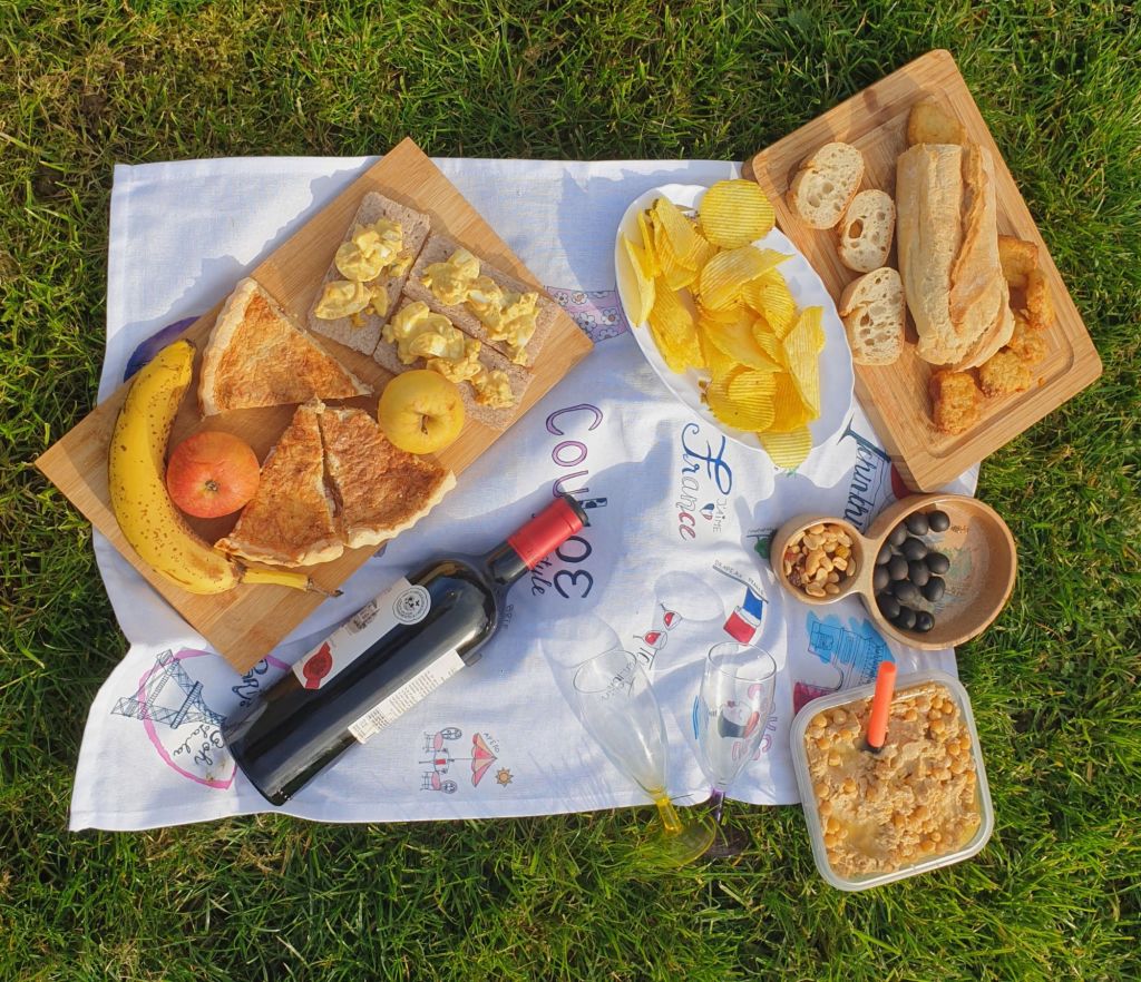 Enkele ideeën, maar hier zijn wat extra suggesties: pasta- of rijstsalade, aardappelsalade, punten watermeloen (met stokjes om je handen schoon te houden), zomerfruit zoals aardbeien en blauwe bessen, bruisende drankjes, en natuurlijk stokbrood met zelfgemaakte hummus. Franse kazen, chips, noten en gedroogd fruit maken het feest compleet. Vergeet niet genoeg water mee te nemen en een plek in de schaduw te zoeken.
